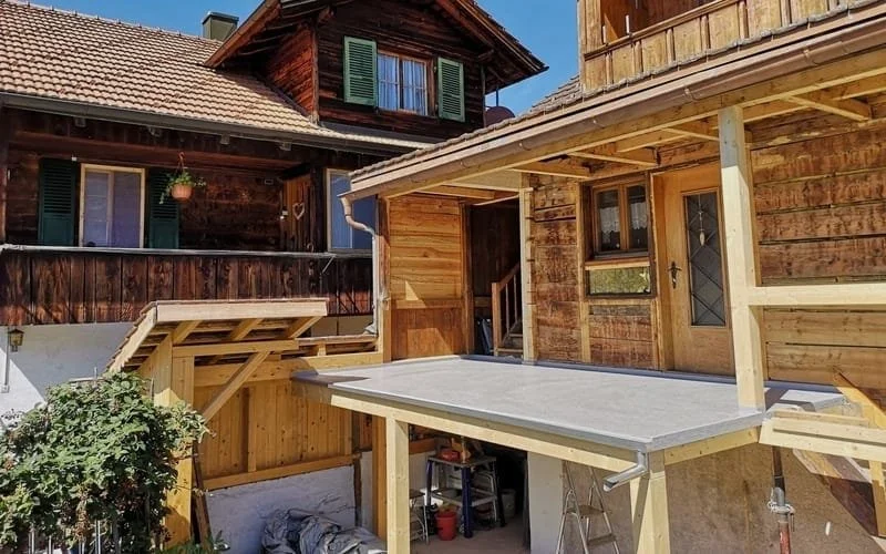 Neue Holz-Unterkonstruktion als Untergrund für die neue Abdichtung
