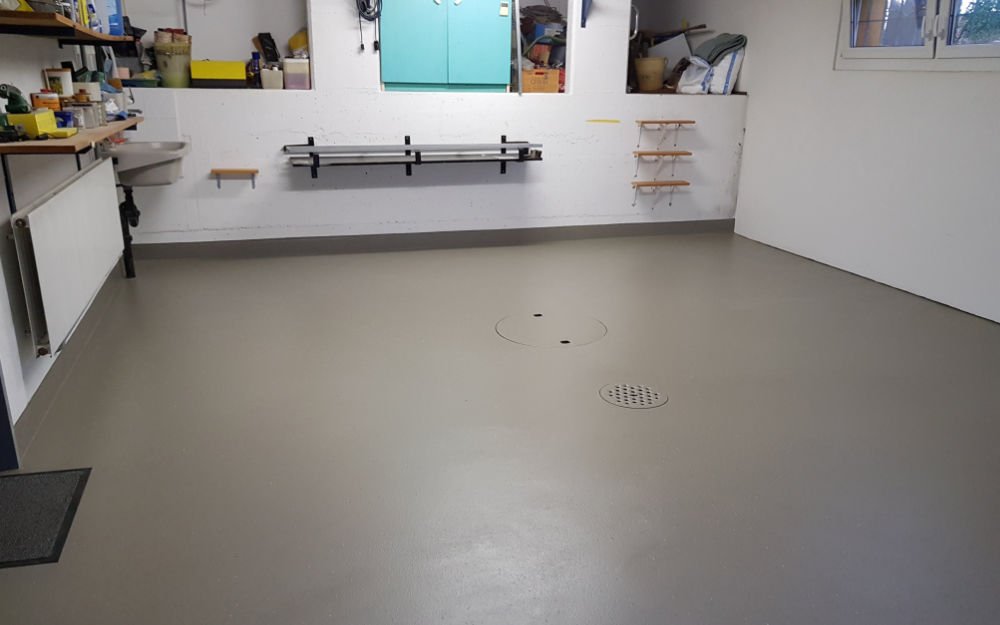 Bodenbeschichtung mit Flüssigkunststoff und Quarzand