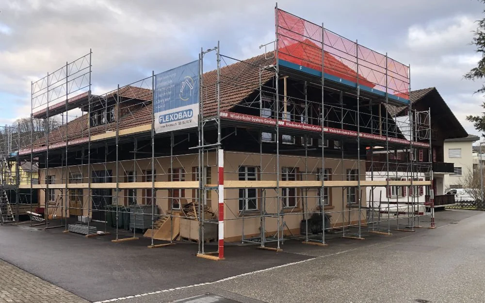 Beginn der Dachsanierung: Installation eines sicheren Baugerüstes