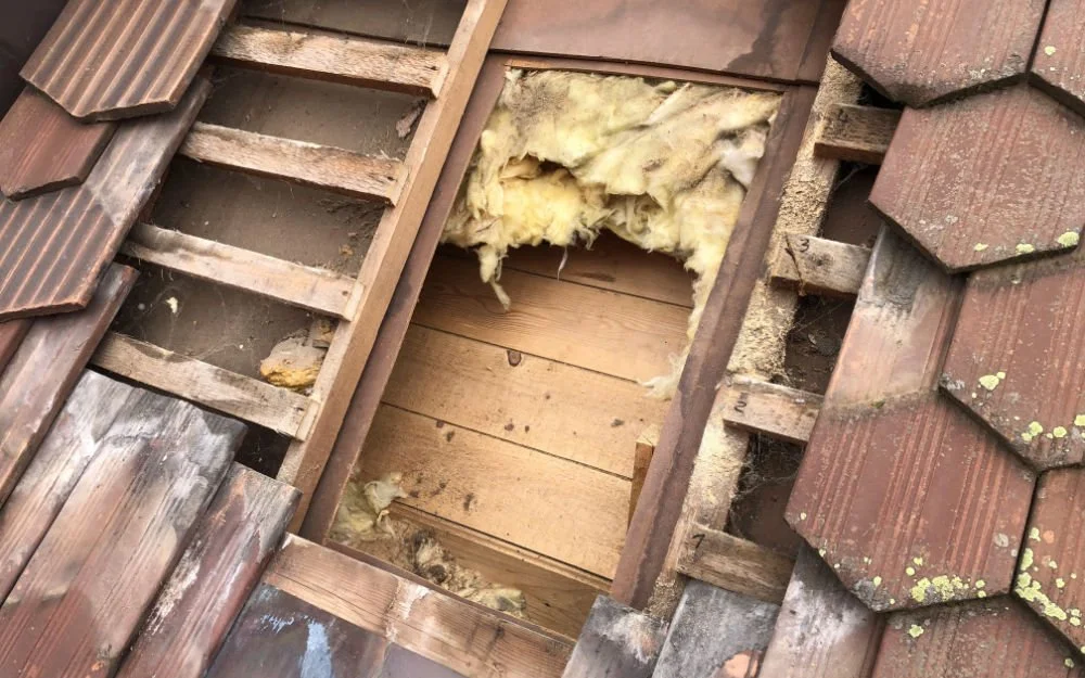 Das vom Marder beschädigte Dämmmaterial wurde sorgfältig entfernt. Dieser Schritt ist entscheidend, um die Grundlage für die weitere Dachsanierung nach Marderschaden zu schaffen.